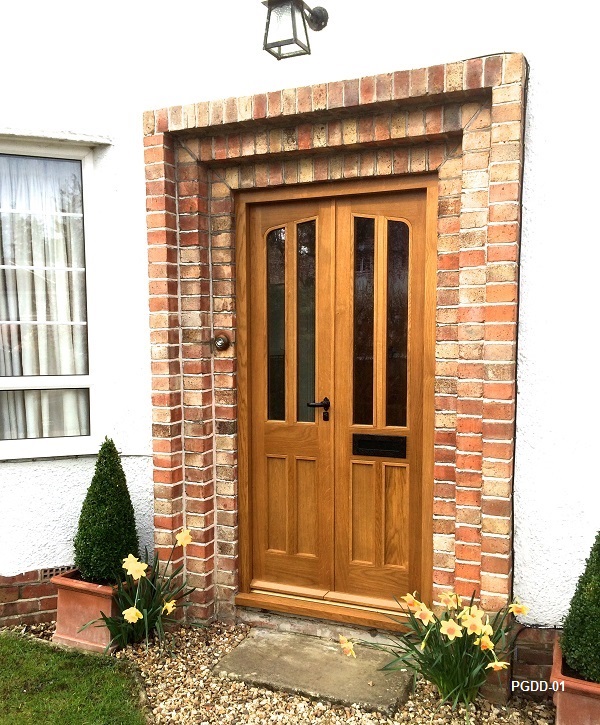 double entrance doors PAN-DD Two sets of European Oak Fully glazed French Doors with fixed Centre Screen