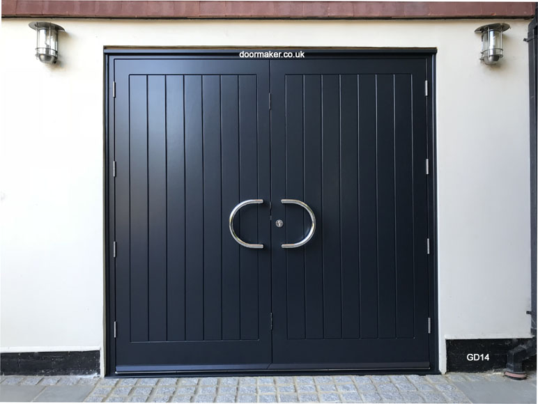 CONTEMPORARY VERTICAL BOARDED GARAGE/DOUBLE DOORS - HARDWOOD SPRAY PAINTED