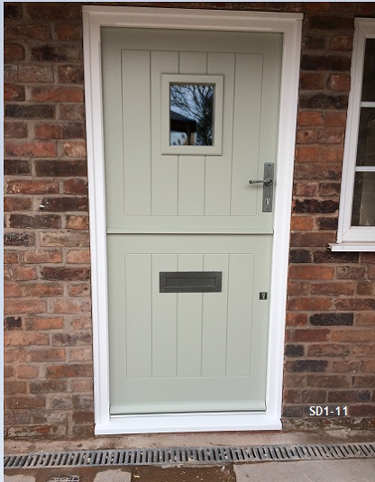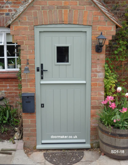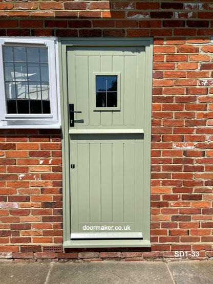 painted Stable door with vision panel and frame incorporating side window